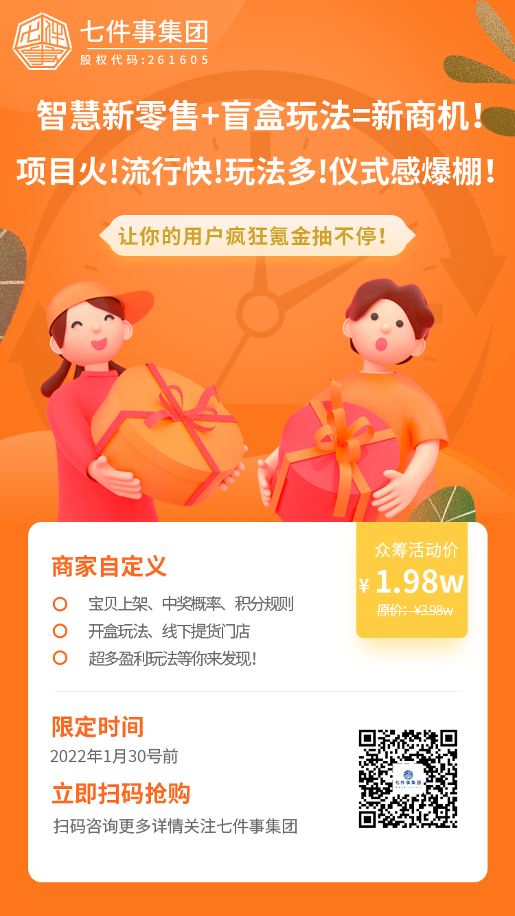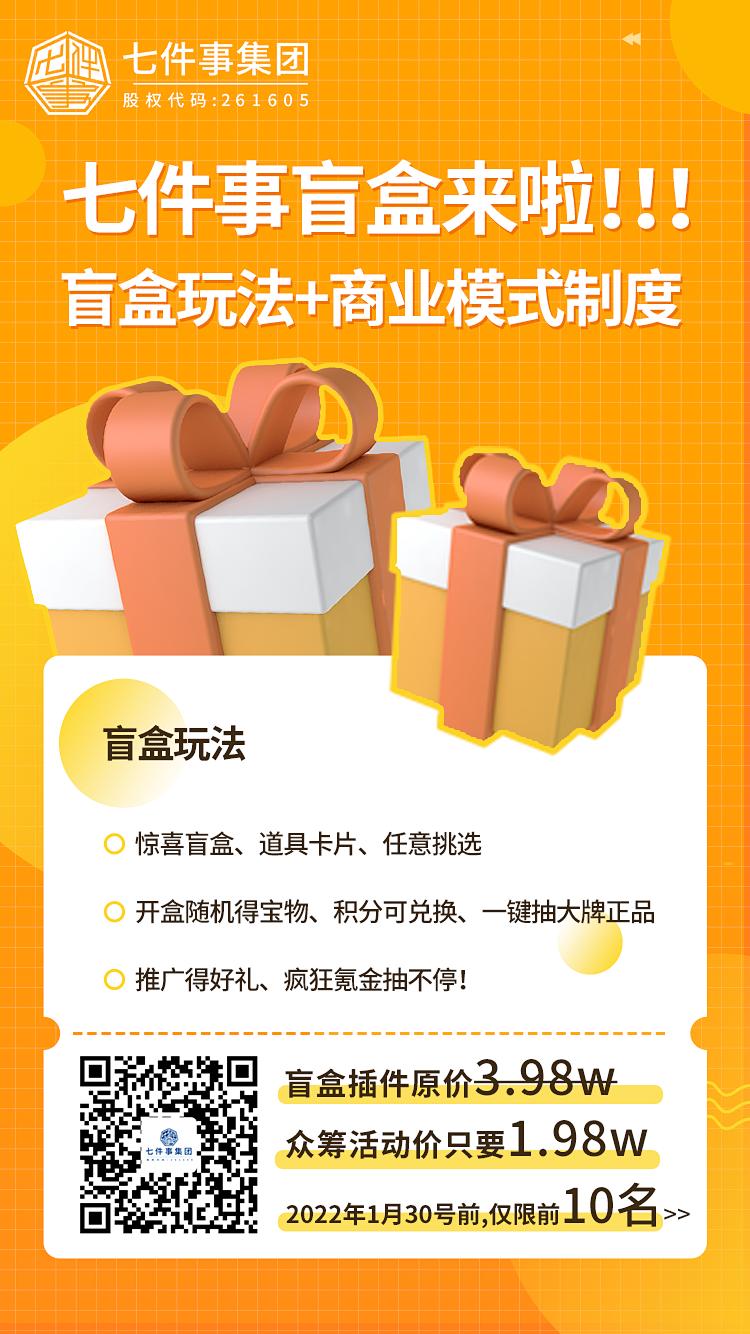 对盲盒玩法感兴趣?别想了,快来加入七件事盲盒玩法开发众筹计划吧!!!