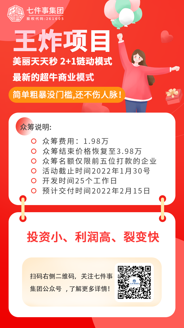 2022年1月30号前五名打款的企业,美丽天天秒模式众筹活动价19800!saas系统免费送!活动之后立马恢复原价39800!