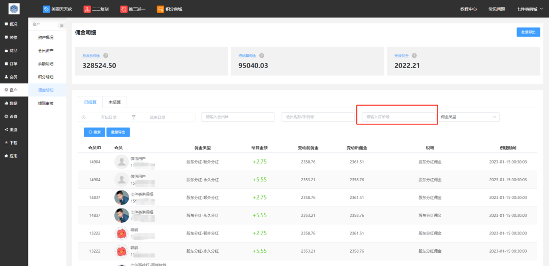 商城总站——商城管理:在搜索栏添加手机号搜索商城功能。 智能名片——部门管理,增加删除按钮 二二复制——分红池,增加可添加的商品数量,目前支持上传最多99个商品 1.增加订单批量删除功能 2.筛选订单处,增加余额支付和微信支付条件 3.订单管理页,点击会员ID姓名或ID号可以直接跳转到会员信息页面 设置——岗位列表,岗位权限编辑,云库存不勾选代理管理,可以访问该功能 今日流失可以改为近期未访 优化详情: 智能表单填写添加完成之后能自动跳转出去 完成情况: 1.会员——会员等级,会员升级条件里新增升级条件:订单完成后(避免客户申请退款,无法降级) 2.会员——会员列表,后台新增支持修改用户手机号的编辑按钮 优化详情: 拼团商品增加推广二维码 完成情况: 优化详情: 发券宝——新增规则——发放规矩——选择会员,新增输入会员ID或者手机号的发放方式 完成情况: 优化详情: O2O门店——商品管理,新增门店信息,方便查看商品属于哪个独立门店 完成情况: 优化详情: 分销商——基础设置, 默认等级可以自定义设置 完成情况: 优化详情: 优化详情: 1.资产——积分明细、佣金明细、提现审核三个管理页面,增加明细导出按钮 ☝左右滑动查看更多 2.资产——积分明细、佣金明细两个管理页面,增加订单号搜索功能 1.装修页面新增预览二维码功能 2.底部显示,可选择设置logo跟版权归属 商城到期的应用在应用市场能够找到,重新购买。 <PAST · 往期回顾 >